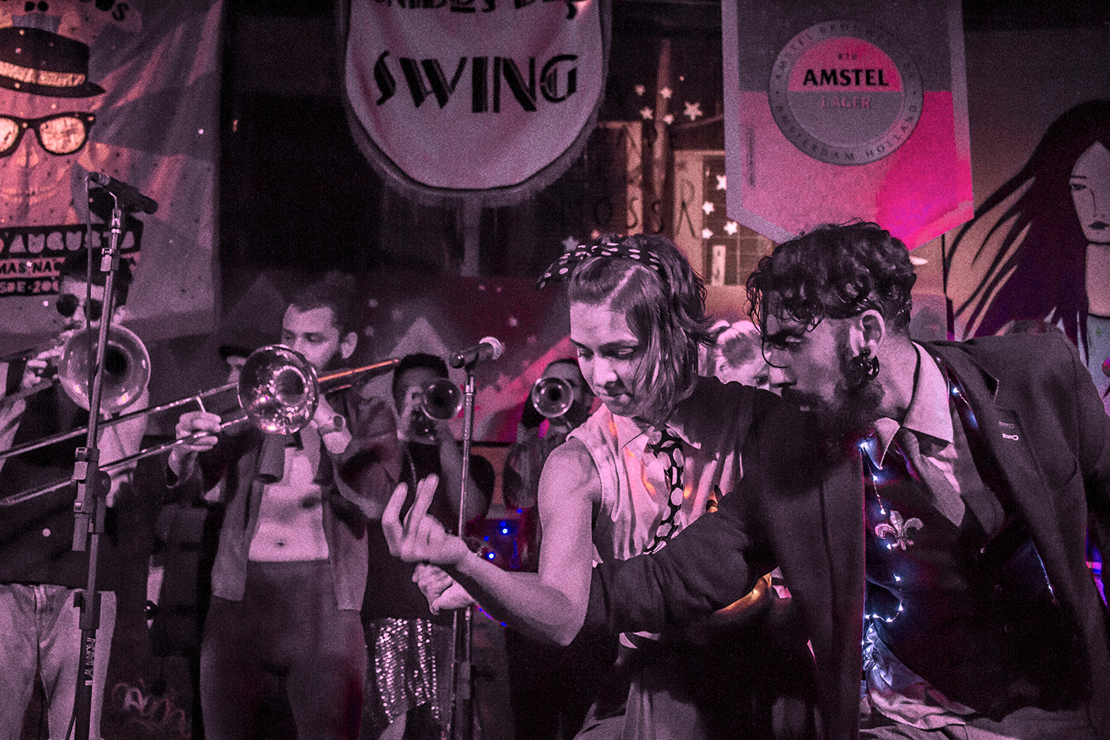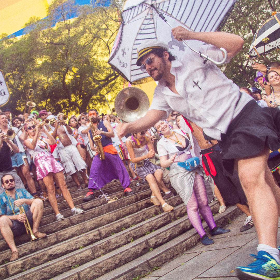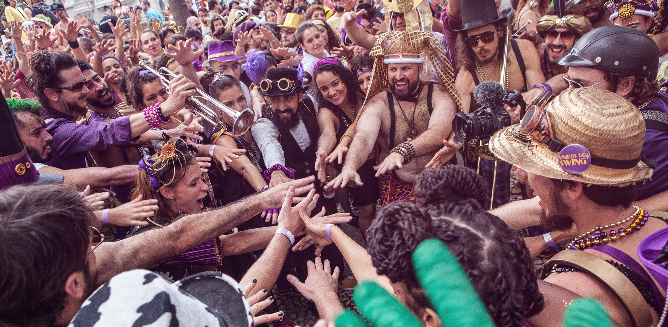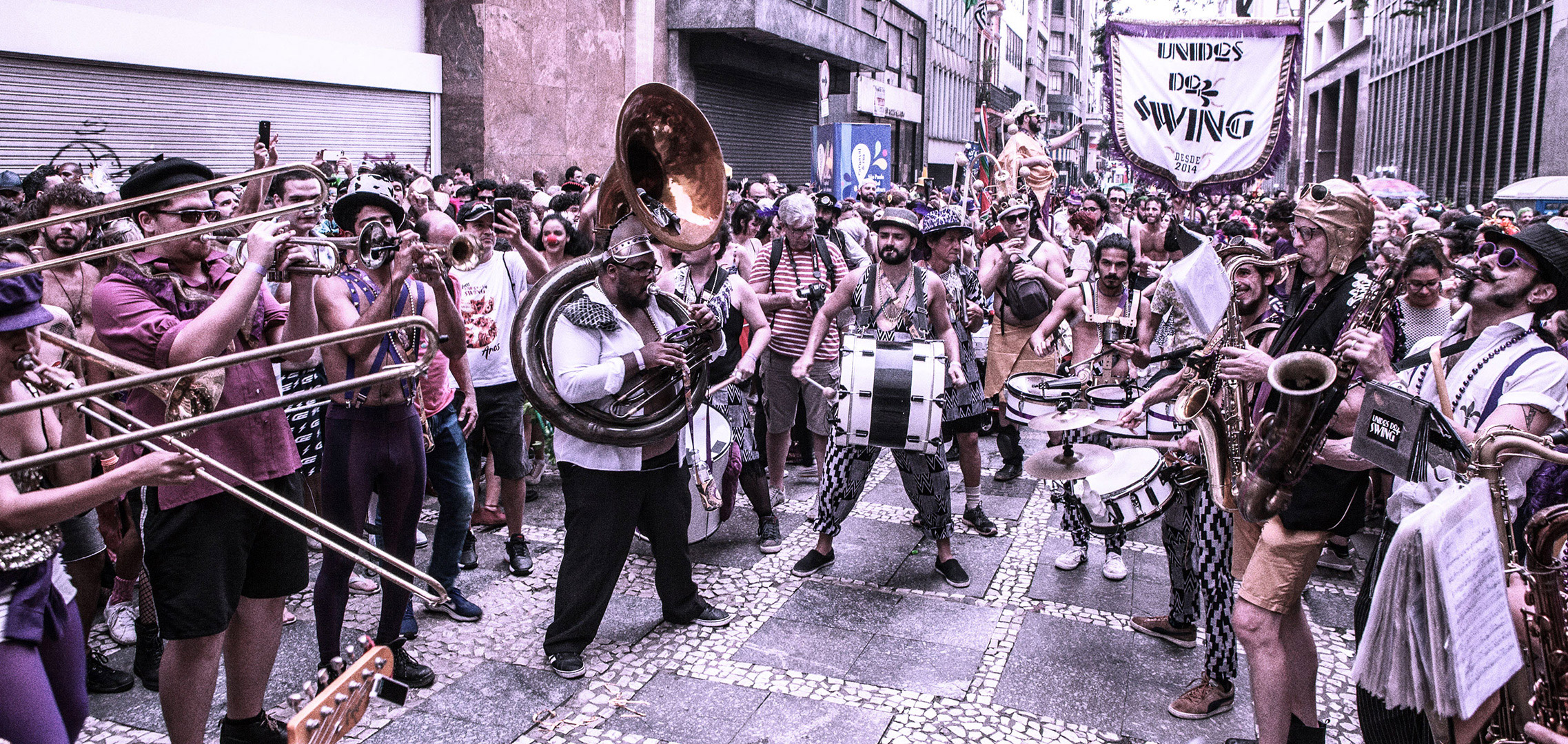 Unidos do Swing é uma fanfarra de rua e bloco de carnaval da cidade de São Paulo que une as linguagens da música, dança e circo numa proposta estética acústica, performática e interativa. Com arranjos que abrangem do swing jazz ao maracatu, do blues ao baião e da música brasileira de carnaval até o ritmo das Brass Bands de Nola, ‘Unidos do Swing’ apresenta sua pesquisa sobre as conexões reais e imaginadas entre o carnaval brasileiro e o Mardi Gras de New Orleans, nos EUA.
